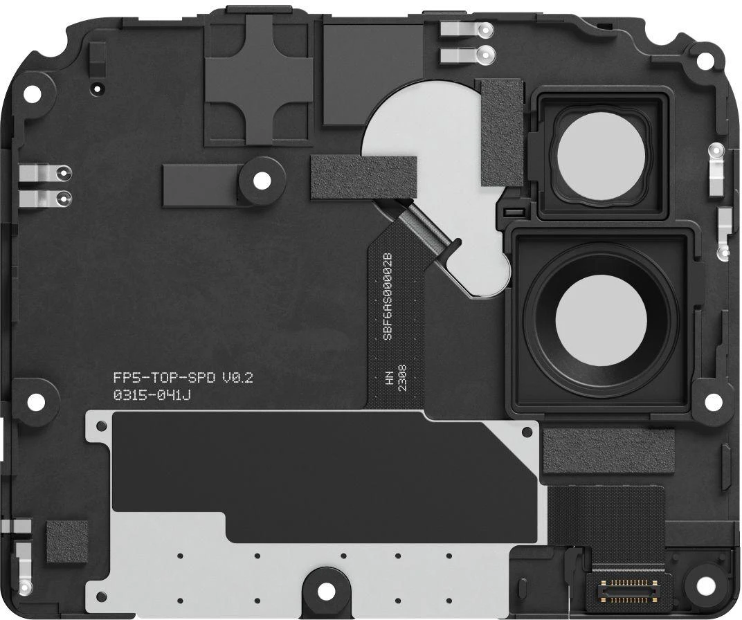 Die Top-Einheit des Fairphone 5 enthält den SD-Kartensteckplatz für erweiterten Speicher sowie den SIM-Kartensteckplatz. Erstmals kannst du diese Komponenten einzeln austauschen, falls sie beschädigt sind. Außerdem gibt es einen TOF-Sensor für die Bildnachbearbeitung. Nicht zuletzt befindet sich in der oberen Einheit auch der Kamerablitz, der zudem als eigenständige Taschenlampe verwendet werden kann. Alle Einzelkameras für das Fairphone 5 sind separat erhältlich.