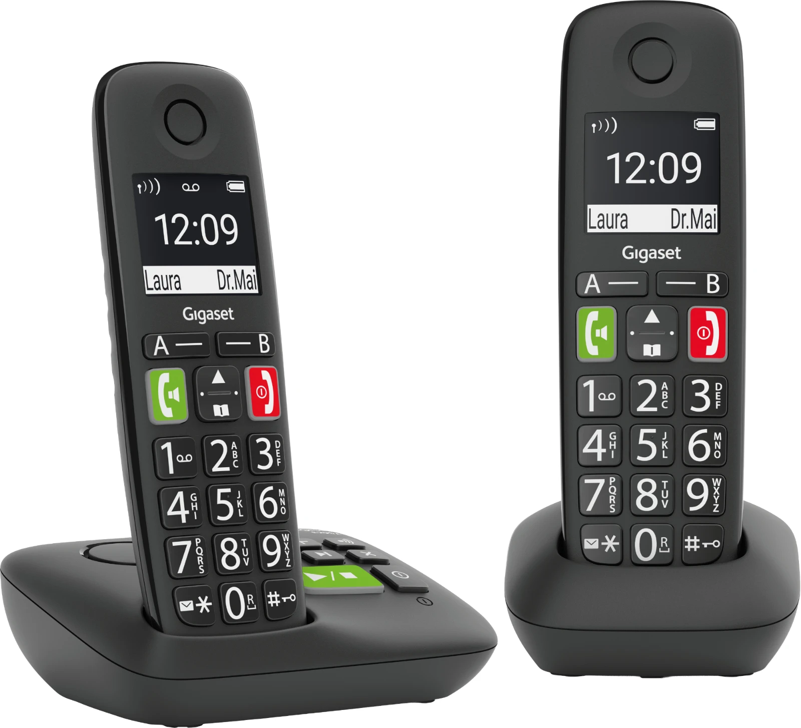 Das einfache Wählen einer Telefonnummer ist der Auftakt zu einem angenehmen Telefonerlebnis. Genau deswegen macht die ergonomische Tastatur des Großtastentelefons Gigaset E290 die Bedienung jetzt so komfortabel wie möglich: Große, beleuchtete sowie deutlich beschriftete Tasten sorgen für gute Lesbarkeit. Besonders wichtige Kontakte, zum Beispiel für den Notfall, können Sie auf einer der beiden Zielwahltasten A / B einspeichern. Wenn von dem Telefon aus nur eine Rufnummer angewählt werden soll, ist die Direktruf-Funktion hilfreich. In schwierigen Situationen reicht das Drücken einer beliebigen Taste um eine vorab hinterlegte Telefonnummer zu aktivieren.